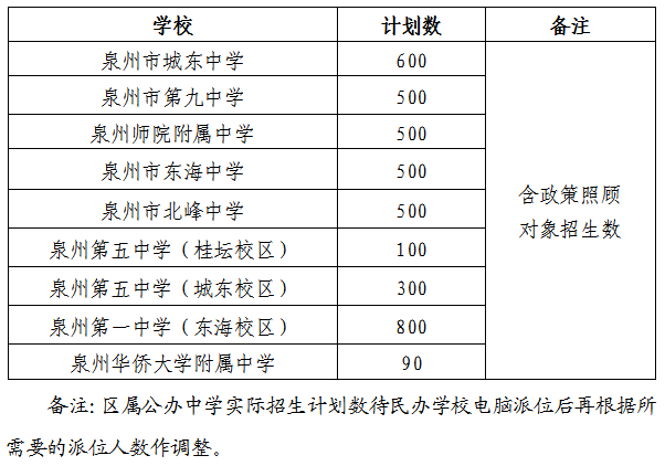 3.7月5日(时间若有变更,另行通知),辖区市直公办初中及泉州五中(桂坛校区)面向丰泽区电脑随机派位招生。