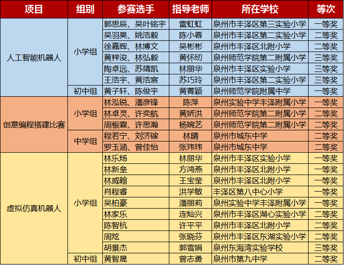 2023年数字中国创新大赛·青少年AI机器人赛道获奖名单(丰泽)