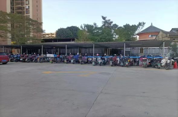 与充电在小区东门外设立停车棚作为小区业主停车和充电使用,