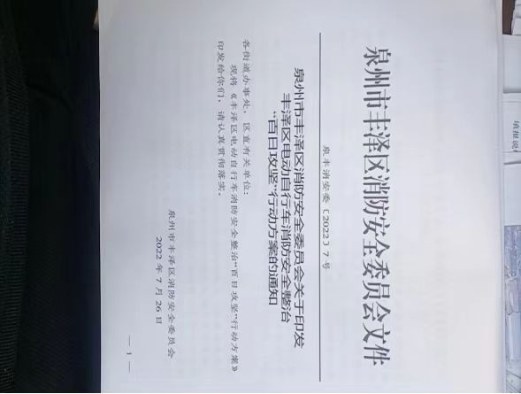 已提供《泉州市丰泽区电动自行车消防安全整治百日行动领导小