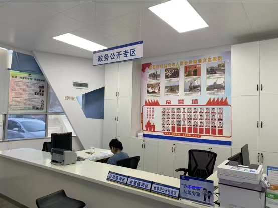 东湖街道综合便民服中心政务公开专区设置在便民服务中心一楼大厅左侧区域,包括线上政务公开便民体验系统和线下实体专区。